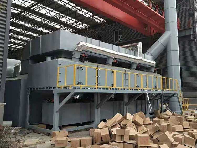 4、催化燃燒設備,經(jīng)過前處理的噴漆房廢氣,漆霧顆粒與其他粘性物質已經(jīng)得到凈化,此時只需要處理噴漆所產(chǎn)生的有機廢氣,使噴漆所生產(chǎn)的甲苯,二甲苯等有機廢氣得以凈化。生產(chǎn)中產(chǎn)生的有機廢氣使用移動伸縮噴漆房收集,需要的風量量為5萬風量,廢氣的特點是風量大,廢氣含量少,所以需要使用活性炭吸附脫附催化燃燒設備來處理有機廢氣。