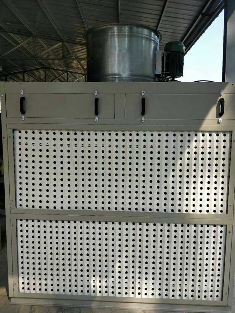 第二種吸附配置、迎風(fēng)面一層方格式漆霧過濾箱,箱體上部配漆霧過濾棉。