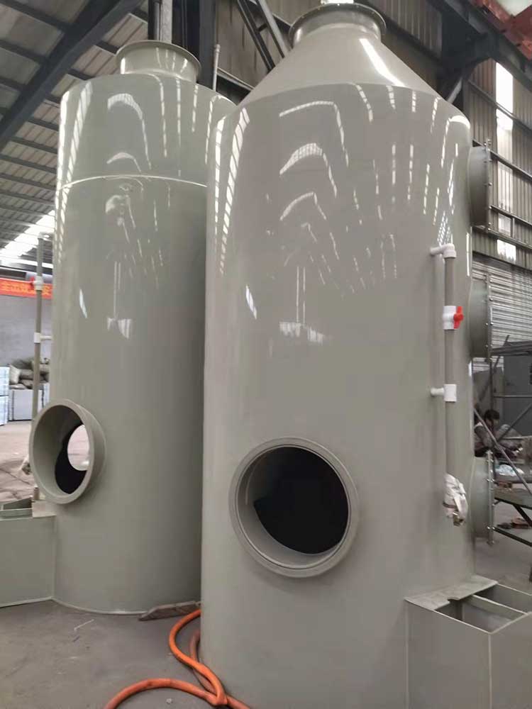 一、噴漆房廢氣處理噴淋塔一般使用pp板制作而成。噴淋塔采用圓形塔體,用法蘭分段連接而成。設(shè)備由水箱、塔體、水泵、進風口、噴淋層、填料層、旋流除霧層、出風口、觀檢窗口等組成。