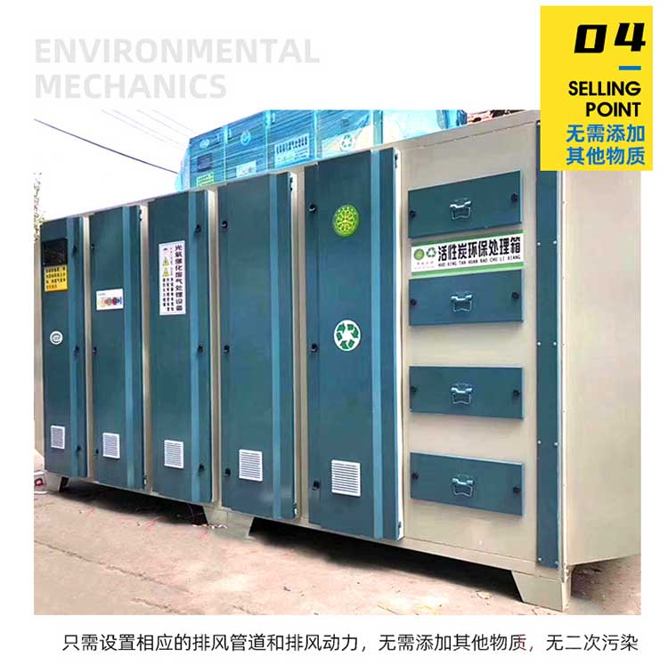 設(shè)備優(yōu)點(diǎn):光氧催化與活性炭吸附聯(lián)合使用,即避免了廢氣處理設(shè)備的單一化,亦提高了廢氣處理效率;活性炭吸分解之后產(chǎn)生的多余臭氧。