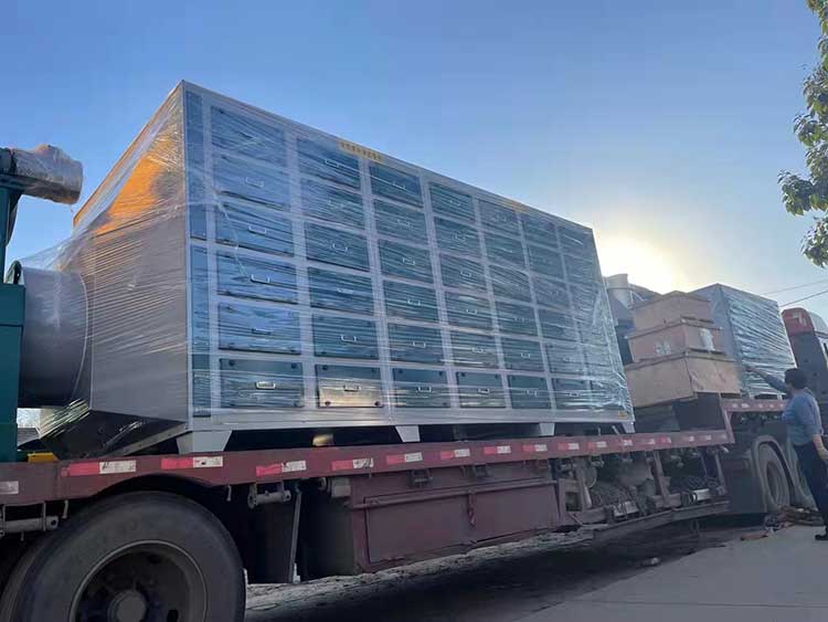 10活性炭環(huán)保箱尺寸:L5.5*W1.5*H2.3(m),2.0mm鍍鋅板制作,外表噴塑。共42個(gè)活性炭抽屜,2520塊(L10*W10*H10)活性炭磚。進(jìn)風(fēng)口一道玻纖過濾網(wǎng),分上下兩層制作,出風(fēng)口一道活性炭過濾棉。活性炭碘值400。
