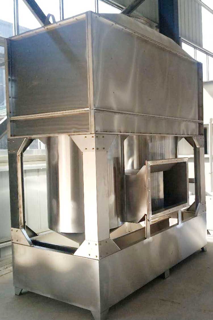 旋流塔內(nèi)安裝有多個“環(huán)形旋流筒”和高效除霧板。旋流桶內(nèi)裝有實心填料球,***上層的除霧板用于凈化水霧,達到脫水霧的目的,含塵氣體在塔板上旋轉(zhuǎn)上升,并與塔頂進入的液體旋流接觸,完成了除塵任務(wù);廢氣中的大顆粒被離心力作用沉降到水池中,***后由人工撈出清洗機殼,使氣體被凈化,達標排放,同時氣旋塔內(nèi)的水可持續(xù)循環(huán)。