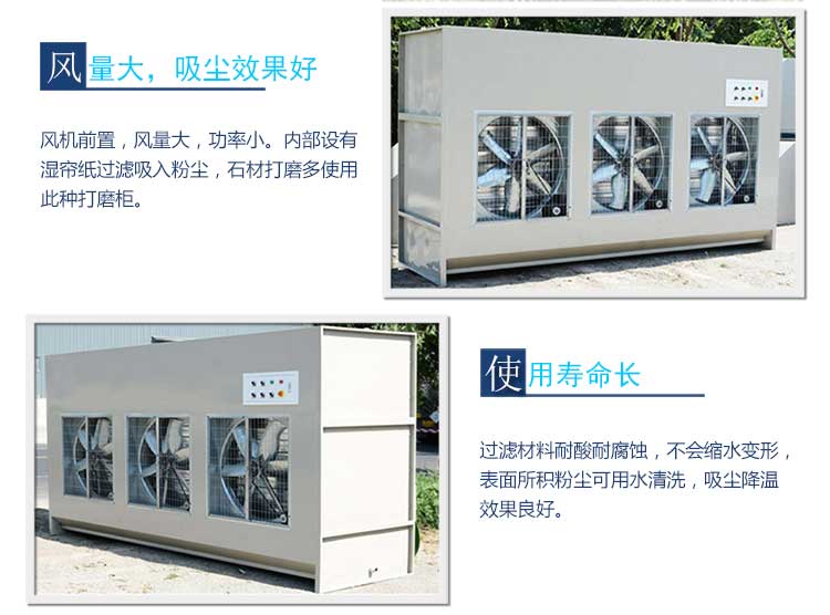 3、工作原理:產(chǎn)品打磨產(chǎn)生的粉塵,經(jīng)過(guò)風(fēng)機(jī),吸附到打磨柜里面,通過(guò)里面的水循環(huán),落到打磨柜的下面。