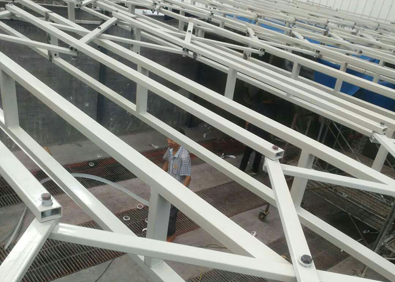 三、頂部伸縮噴漆房是移動伸縮噴漆房的一種,伸縮頂蓬兩端有固定的支撐,伸縮裝置在固定支撐上面伸縮移動,方便工件運(yùn)轉(zhuǎn)。以下為您展示安裝圖片。