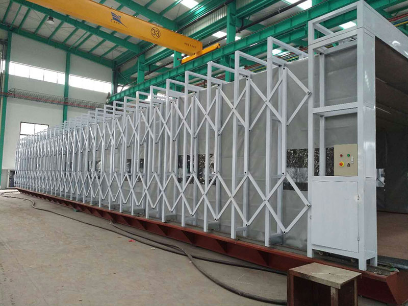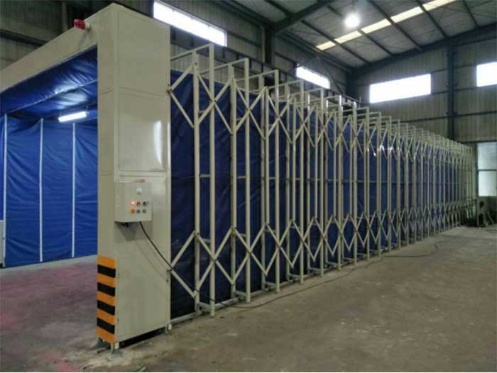 ***種是移動伸縮式噴漆房,伸縮房一端固定,固定端可配置粉塵收集回收設備或者漆霧收集處理設備,另一端伸縮,方便工件來回運轉(zhuǎn)。工件準備時,伸縮房收縮;工件到達伸縮房內(nèi)***區(qū)域,伸縮房伸展;噴漆工作完成后,收縮房體,工件移出。此種伸縮房是現(xiàn)在使用***多的伸縮房,其長寬高根據(jù)企業(yè)的實際情況定制。