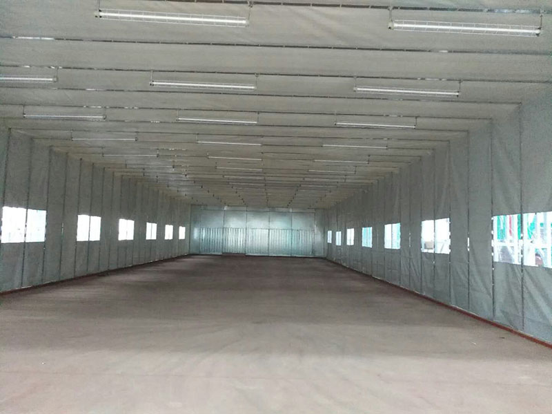 移動伸縮房主要由軌道,移動框架室體,房體密封布,電控箱等組成。移動伸縮房的長寬高根據(jù)實際需求定制,伸縮房密封布防水,抗拉,阻燃。如果應用在易爆環(huán)境電機及LED燈均具有防爆性能。
