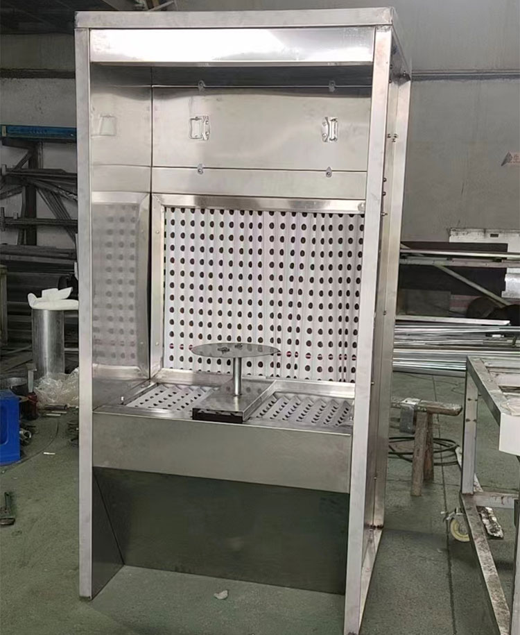 具體尺寸 | 箱體尺寸長(zhǎng)2.0米,寬1.0米,高2.2米,臺(tái)面高度0.75米,臺(tái)面深度0.5米。臺(tái)面上附V型過濾紙。臺(tái)面帶小轉(zhuǎn)盤。吸附層使用V型過濾紙。抽屜層過濾使用漆霧過濾棉。 防爆燈一盞。 | ||