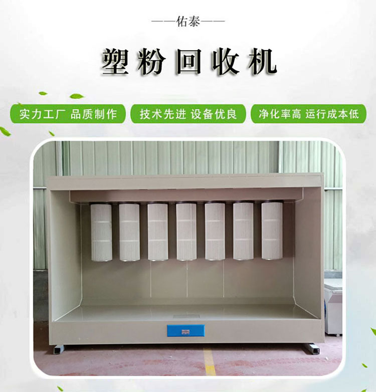 塑粉回收機由箱體、粉末過濾系統(tǒng)、抽風系統(tǒng)、控制系統(tǒng)等四大部分組成,噴涂時產生粉塵經過高精度濾筒過濾,凈化氣流由抽風機排出室外,整個程序電氣自動控制。